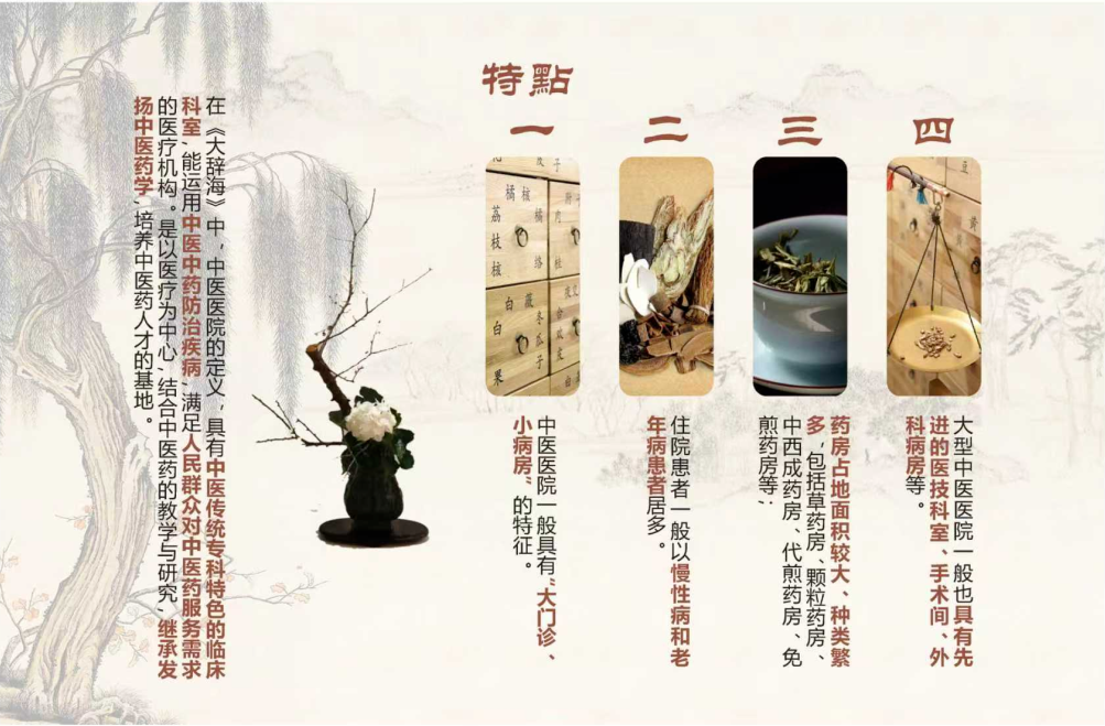 建筑外立面采用了庐陵风格,以现代手法再现吉安传统建筑肌理;室内大量使用具有中式传统特色的装修风格,其纹理与气息也营造出宁静舒缓的疗愈环境。针灸、推拿等特色治疗室的墙面设计了穴位图谱的艺术化呈现,成为治疗前的认知铺垫。