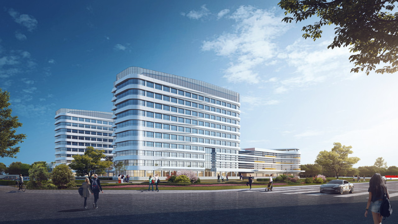 院区沿着城市干道由南向北有序展开,建筑集中与分散相结合,环境与建筑相映衬,形成富有吸引力的建筑形象和花园式的医院环境。街景界面虚实相应,富有变化。规划强调与医疗区形成整体性的同时兼顾各条城市道路转角的街景形象,提升地段品质。