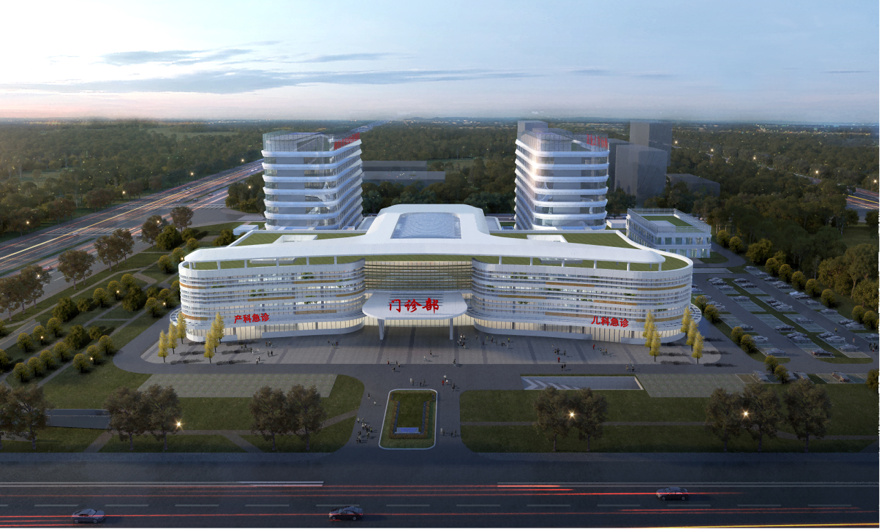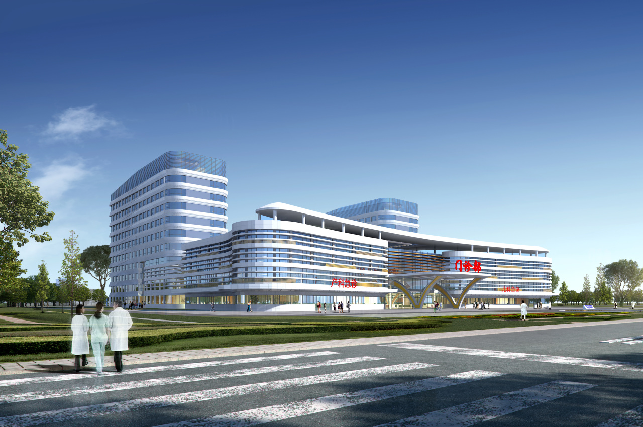 花园式的规划布局、绿色生态的室外景观。主体医疗区内部通过医街将门诊、急诊、医技、住院相连,患者有明确的方向感,就诊流线为:门诊中庭—医街—候诊厅—二次候诊—诊室与医技科室,功能分区明确,流线便捷清晰。