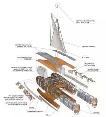 有六个模块化的实验室,可以进行生物、动物、地质、气象学方面的研究。这些实验室也可以被转化为医疗设施,来医治岸边生病的居民。