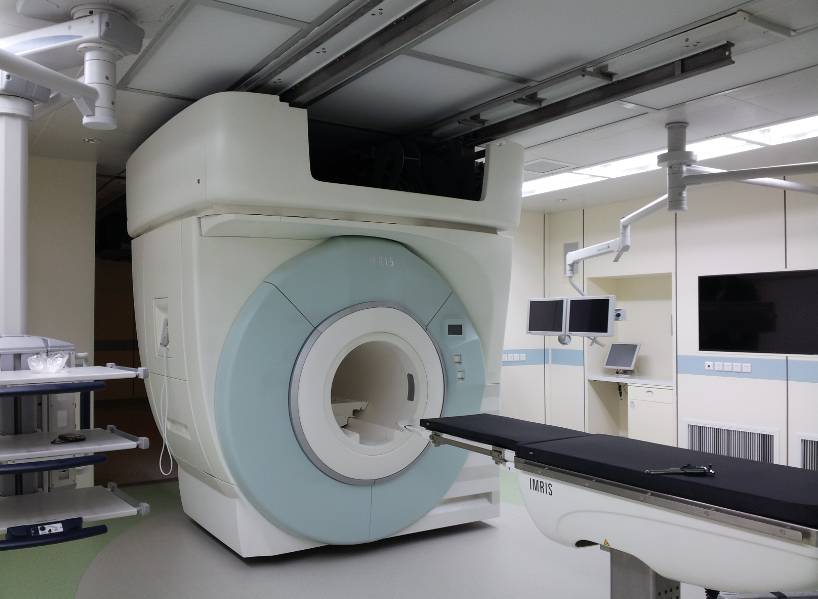 MR手术室,即核磁一体化手术。是在实时影像学的指引下,采用介入技术联合外科技术手段治疗复杂的疾病,以达到减少创伤,缩短体外循环时间,甚至避免体外循环,提高整体疗效的目的。磁体平时停放在诊断室,在需要对手术患者进行扫描时,磁体可以通过吊顶上的轨道自动滑动到手术室内患者的上方。同时诊断室还可以兼备常规诊断、活检以及立体定向的功能。