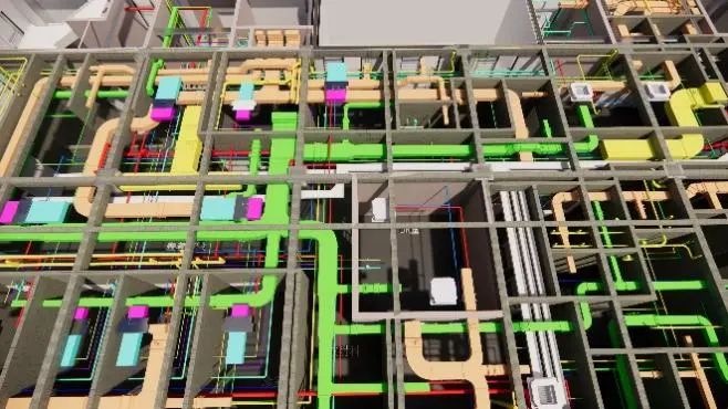 经过BIM技术综合排布以后,多专业的高度集成、机电各系统井然有序排布,兼顾规范、安装、检修与美观。