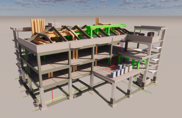 04 | 由于项目为旧楼改造项目,结构加固后预留给内装部分的时间不到70天,且作业面需逐步清理,涉及大量穿插施工,实际施工时间被进一步压缩; |