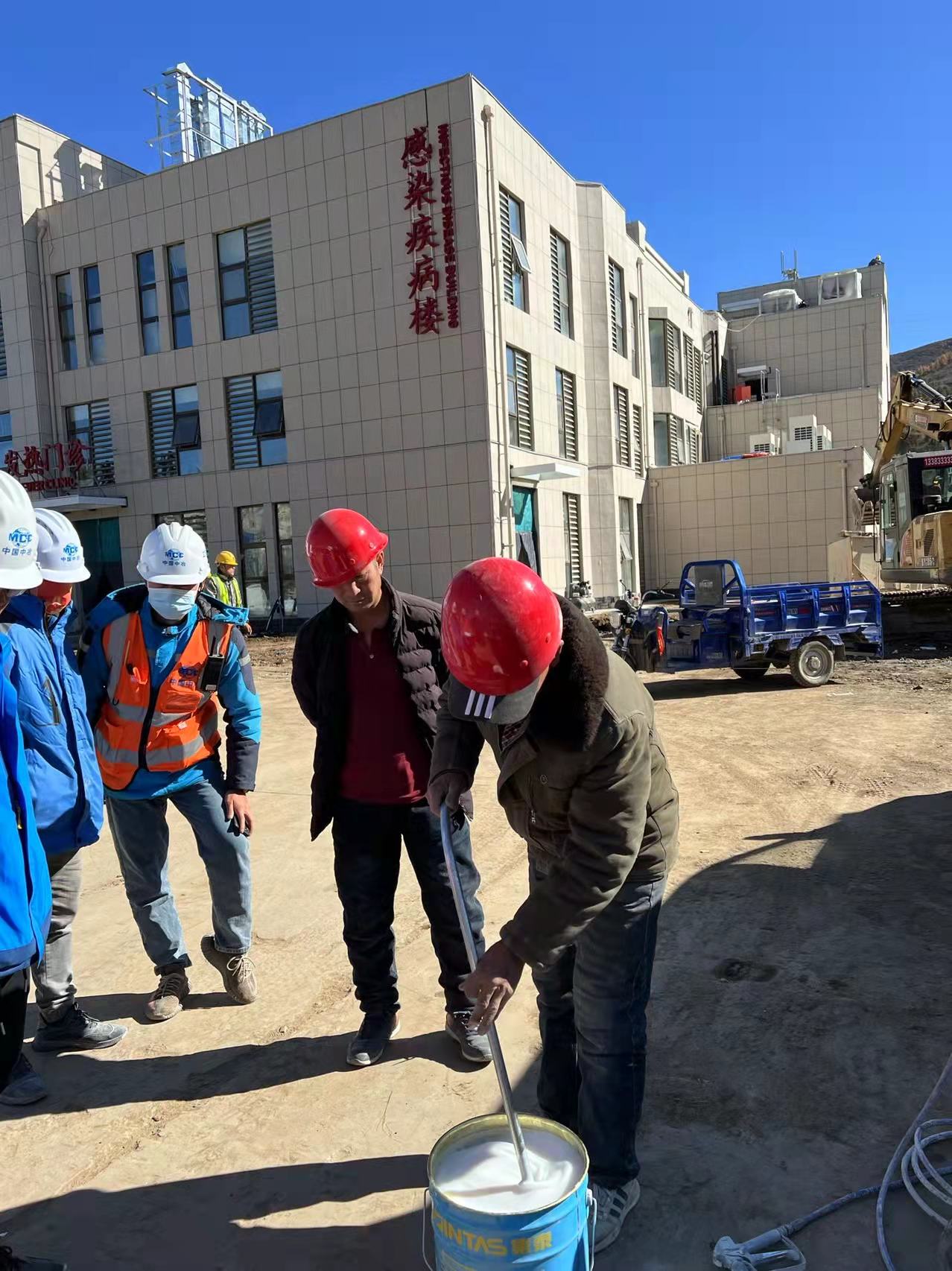 据悉,北医三院崇礼院区感染楼项目使用的是集泰内墙无机涂料,无机矿物涂料与有机水性涂料(包括常规乳胶漆等)施工流程基本大致一样,但它们性能有着本质区别,乳胶漆之类涂料靠的是水性树脂乳液成膜,就像一层化学胶水粘在墙面上,起到一种美观的装饰效果,而水性无机矿物涂料可渗透墙面基底,经过硅化反应成一层坚硬的硅酸盐石,与墙体结合为一体,附着力强、耐擦洗。