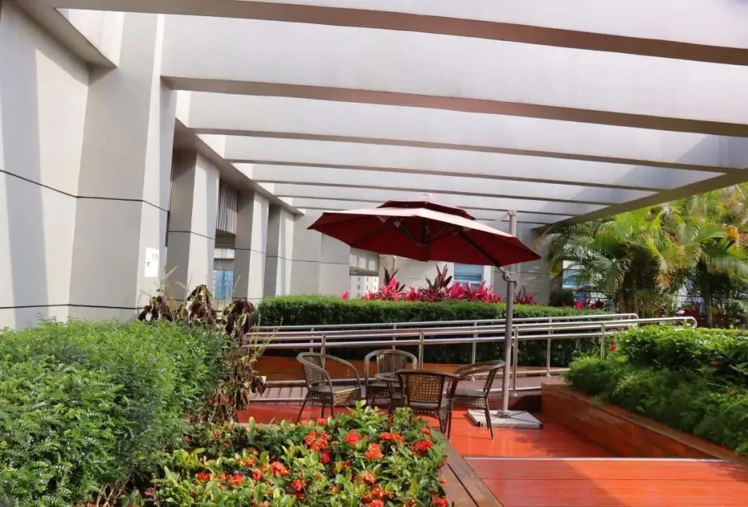 萨米国际医疗中心毗邻马峦山,坪山河环绕在侧,周边自然风光优美,上有鸟语花香的空中花园,下有碧波荡漾的灵动鱼池,伴随四季变化,各种时令花草呈现出不同风物景观。医院周边没有现代化工业企业的污染,空气质量优良,包含负氧离子,能够极大的调节患者的身心健康。
