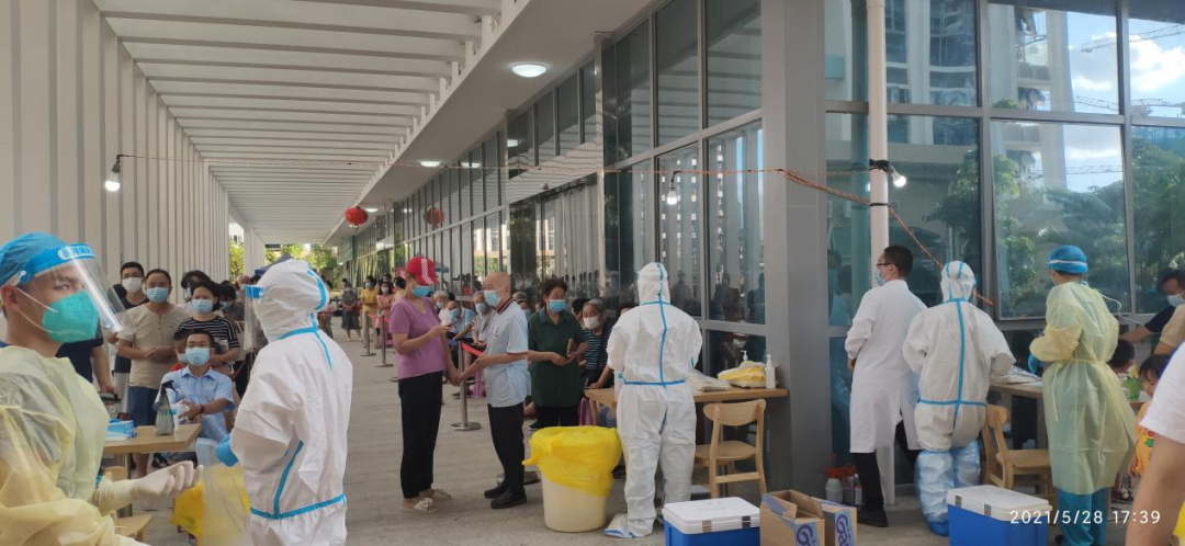 2021年5月25日,广东省突发疫情,面对深圳市新一轮的严峻趋势,虽然医院正在承受新冠病毒疫苗接种工作的巨大压力,但在医院党委书记兼副院长王诚的带领下,仍然在最短时间内,组成了由医疗总监陈敏任总指挥、王新园主任医师担任队长、30余位医生、护士及保障人员组成的核酸采集冲锋队。