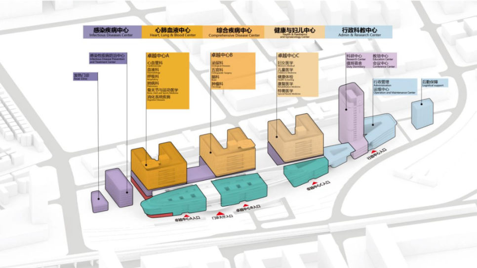 方案充分挖掘场地几何特征,按照疾病轻重缓急原则,构建梯度式卓越中心体系。