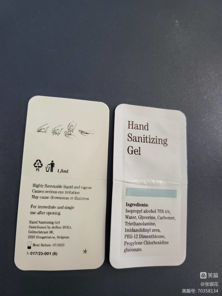 第1发现,飞机上创意包装的氯己定消毒凝胶。