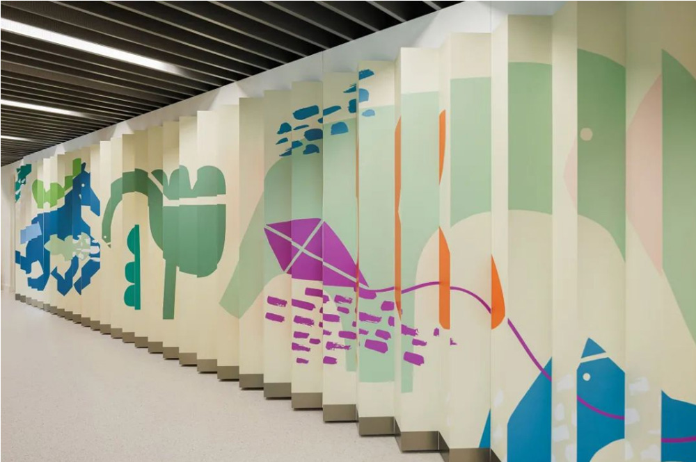 综合考虑,院方选择了多学科团队ARG设计工作室,为病区的社交空间、流通和休闲区设计一个新的形象、环境和氛围。于设计师而言,最具挑战的难点是在建筑语言与整个走廊的装饰插画之间建立一种紧密联系。