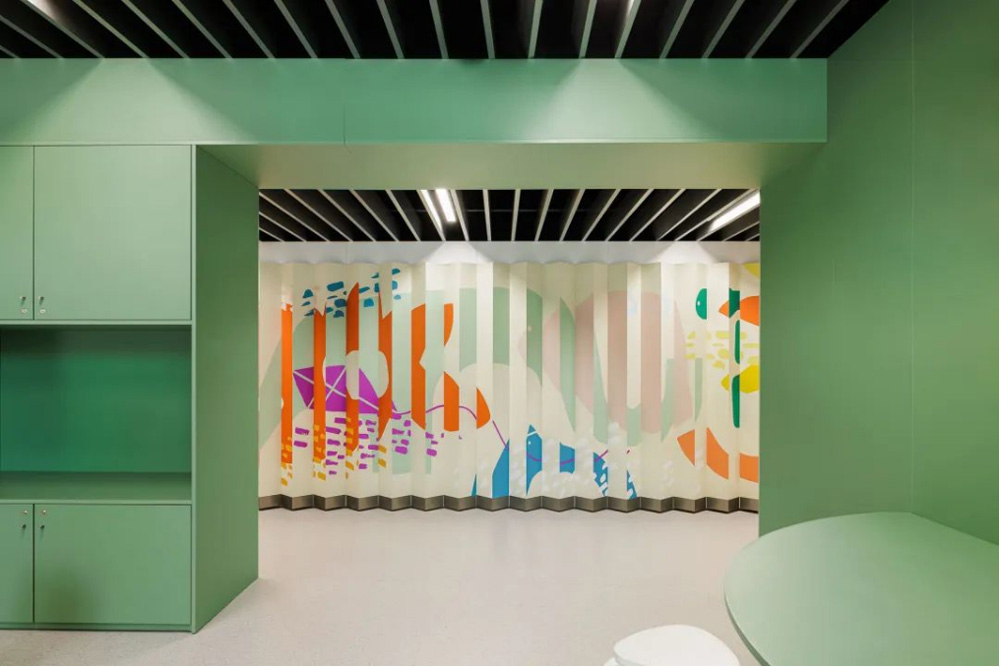 ARG工作室设置了一系列的功能性空间,从学习区、阅读区、绘画区、活动区到简单的游戏区,每个区域都匹配了不同的颜色,以打造一个沉浸式的空间体验。总体而言,变化的色彩为患儿提供了一个动态且宁静的医疗环境。