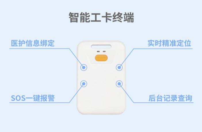 此外,针对医护人员还配备了智能工卡定位终端,除了人员定位功能,还具备一键报警功能,当发生应急事件时可主动报警求助,有效提升了医护人员的安全防护保障。