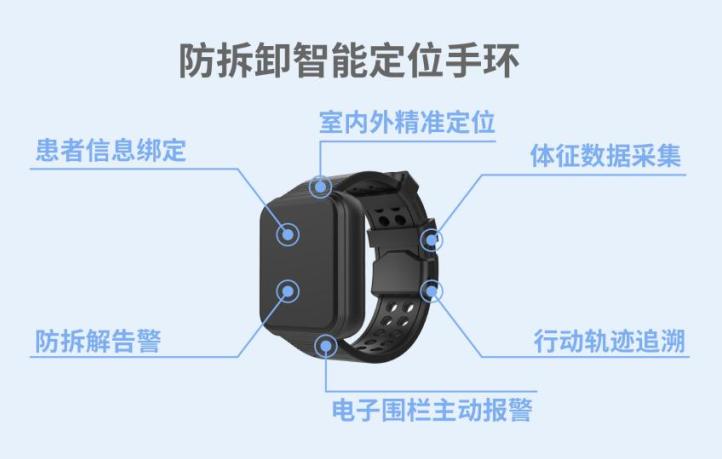 病人佩戴防拆卸的智能定位手环,可以实时点名,通过软件平台显示每个病人所在位置。
