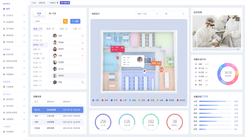 广西脑科医院智护安全一体化管理平台,是以物联网技术为基础,人员定位系统为核心,针对智能看护及智能护理管理打造的一体化综合管理平台。该平台构建主要由智能看护管理系统和智能护理管理系统组成,根据定向不同分别对应安全看护以及医护管理的功能需求。