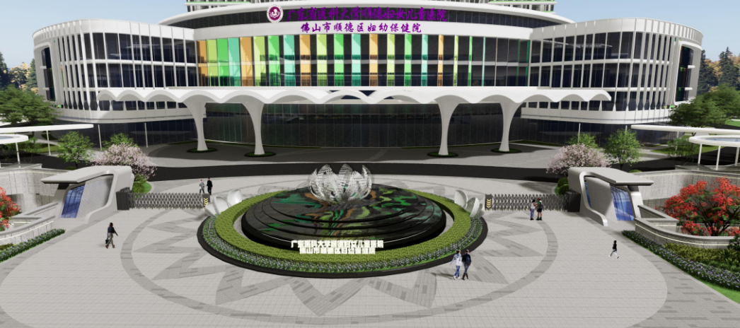 该项目建筑设计方案以“花蓬锦簇,丰华润德”为形象创作理念,整个院区犹如花丛中的凤凰。“凤凰于飞,翙翙其羽”,寓意广东医科大学顺德妇女儿童医院新院区将成为医院建筑设计典范。裙房建筑以自然界的构造为模型设计的花式建筑,有一种亲近自然的感受,本身带有亲和力和甜蜜感。建筑整体想孕育是生命的象征,以莲花为设计载体,寓意每个孩子都像独特的精灵备受呵护,结合妇女儿童医院的功能需求和顺德地区的地域气候特点,构建“花”式建筑布局合理安排医疗流程。