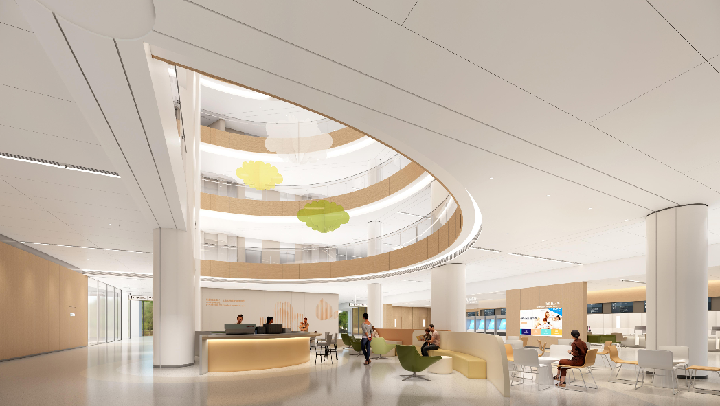 莲心梦园区位于门诊楼的核心地带,其标志性的设计为一处宏伟而别致的镂空下沉式庭院,该庭院以莲花的形态精心雕琢,寓意深远——象征着每一位踏入这片圣地的母亲都能平安顺利地迎接新生命的到来,实现她们心中最温柔的梦想,让妇幼之梦在这里圆满绽放。