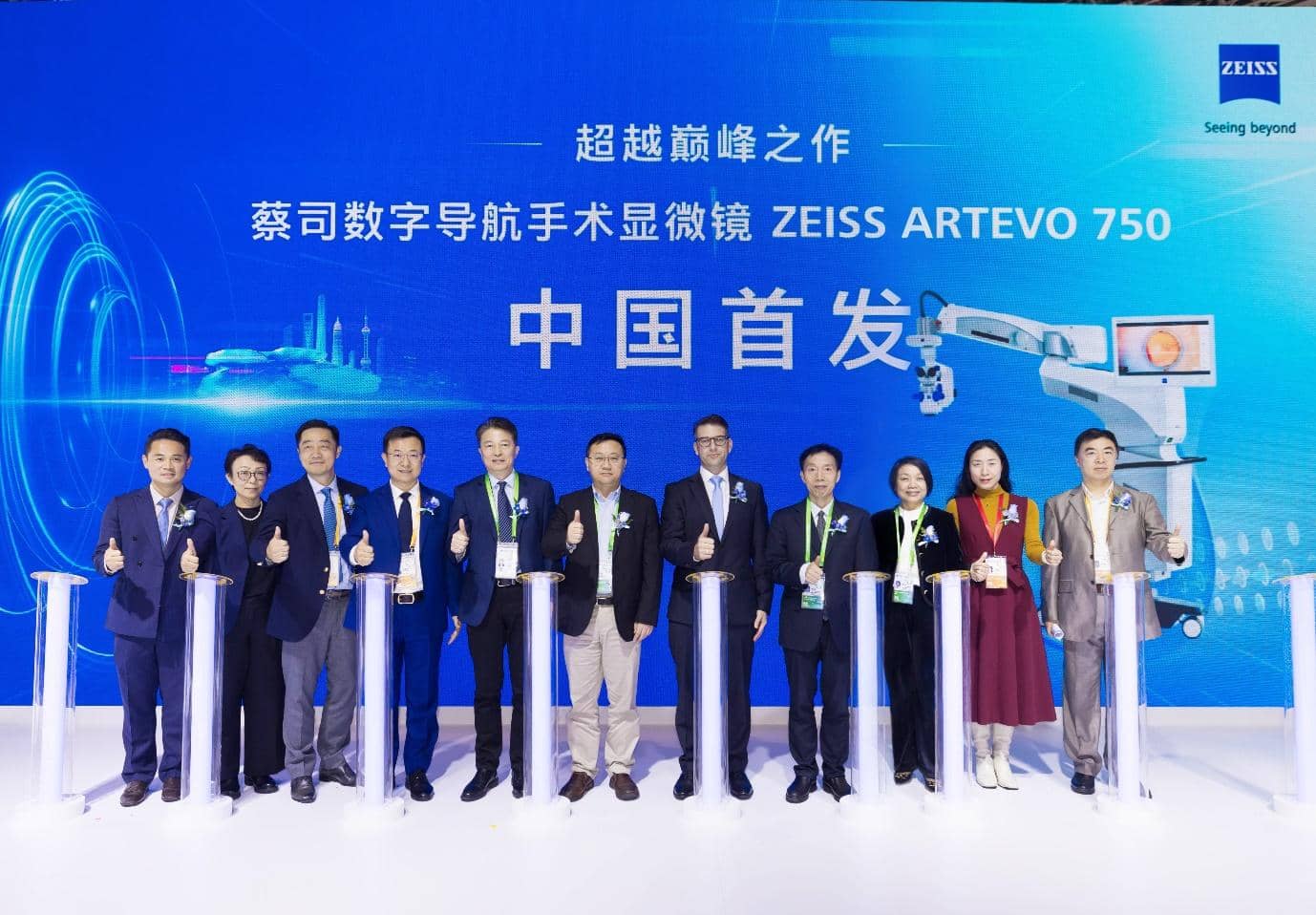 首发仪式现场,复旦大学附属眼耳鼻喉科医院周行涛教授、莫晓芬教授、王晓瑛教授、姜春晖教授,上海交通大学医学院附属瑞金医院沈玺教授、上海市静安区市北医院陈吉利教授、蔡司大中华区总裁兼首席执行官费铭远先生(Martin Fischer)、蔡司中国医疗部眼科常规设备业务部负责人谭俊锋先生、蔡司中国医疗部DORC业务部负责人姜波女士、蔡司中国医疗部东区销售总监王建中先生、蔡司中国医疗市场部负责人张国平先生等共同见证这一重要时刻。
