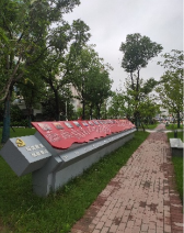 核心标识:医院出入口设立巨型院名石,彰显百年为民初心。院名石长9.1米、高2.4米、厚0.5米、重30吨,正面镌刻中国书法家范曾题写的院名,背面刻有南通书法家张晏题写的核心价值观“仁德通江海,博医达天下”,质朴大气、庄严厚重,是医院深厚文化内涵的重要体现。
