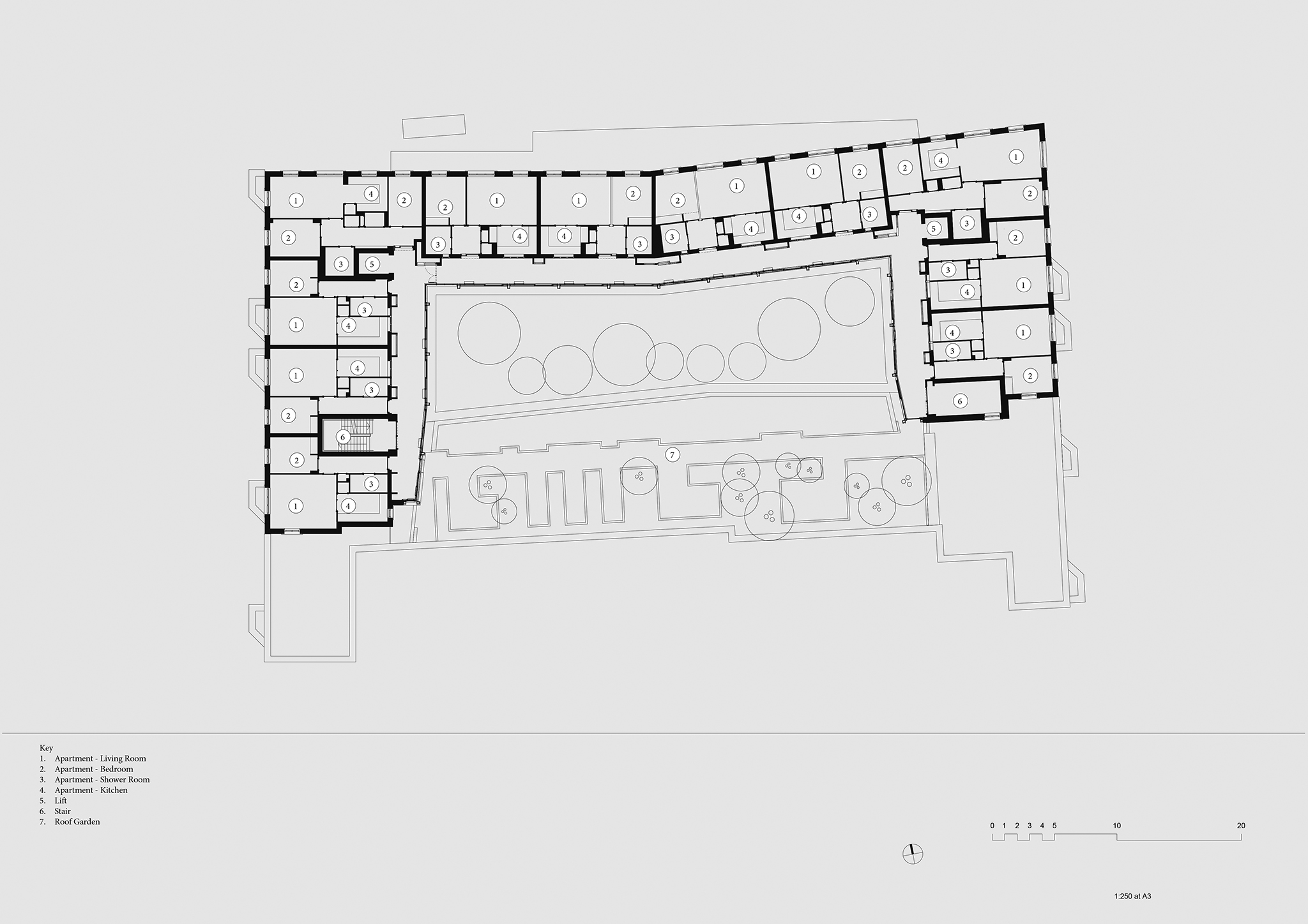 庭院布局的细节、共享的种植空间以及整个建筑周边的社交式阳台通道是阿普尔比·布鲁济贫院区别于许多高密度住宅的几个关键因素。它们有力地证明了更多的公共生活能够驱散现代生活中常见的孤独感。