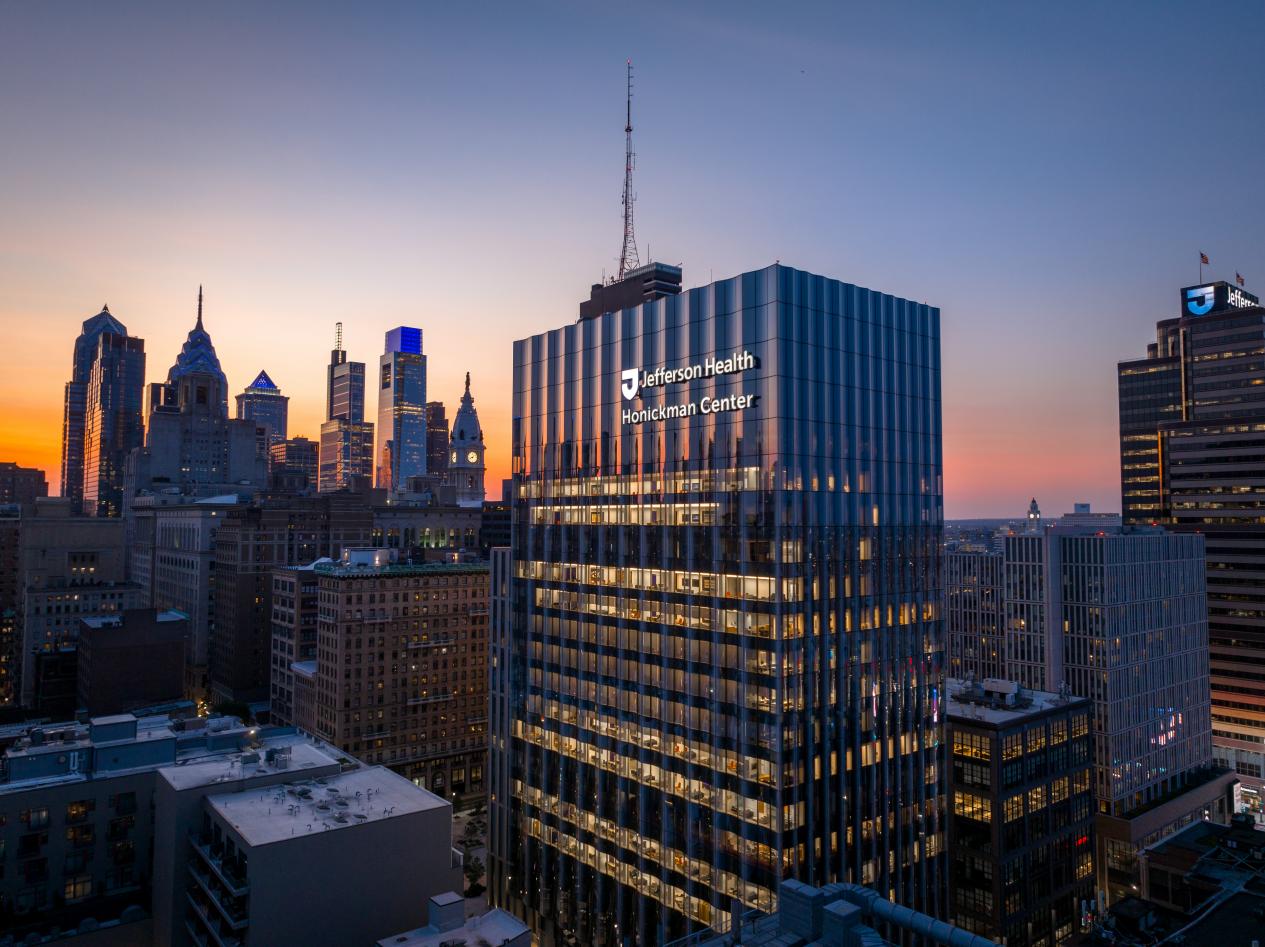杰斐逊医疗保健霍尼克曼中心项目的完工标志着东市场区改造工程的落成,该项目占地4.3英亩(约合17,401.48平方米),位于费城中心城区核心地带,将步行友好型街道景观与混合用途活动区从市场街向南延伸至栗树街。其褶皱玻璃幕墙重新定义了杰斐逊健康系统的形象,既巩固了其中心城区的地位,又提升了城市天际线的高度。