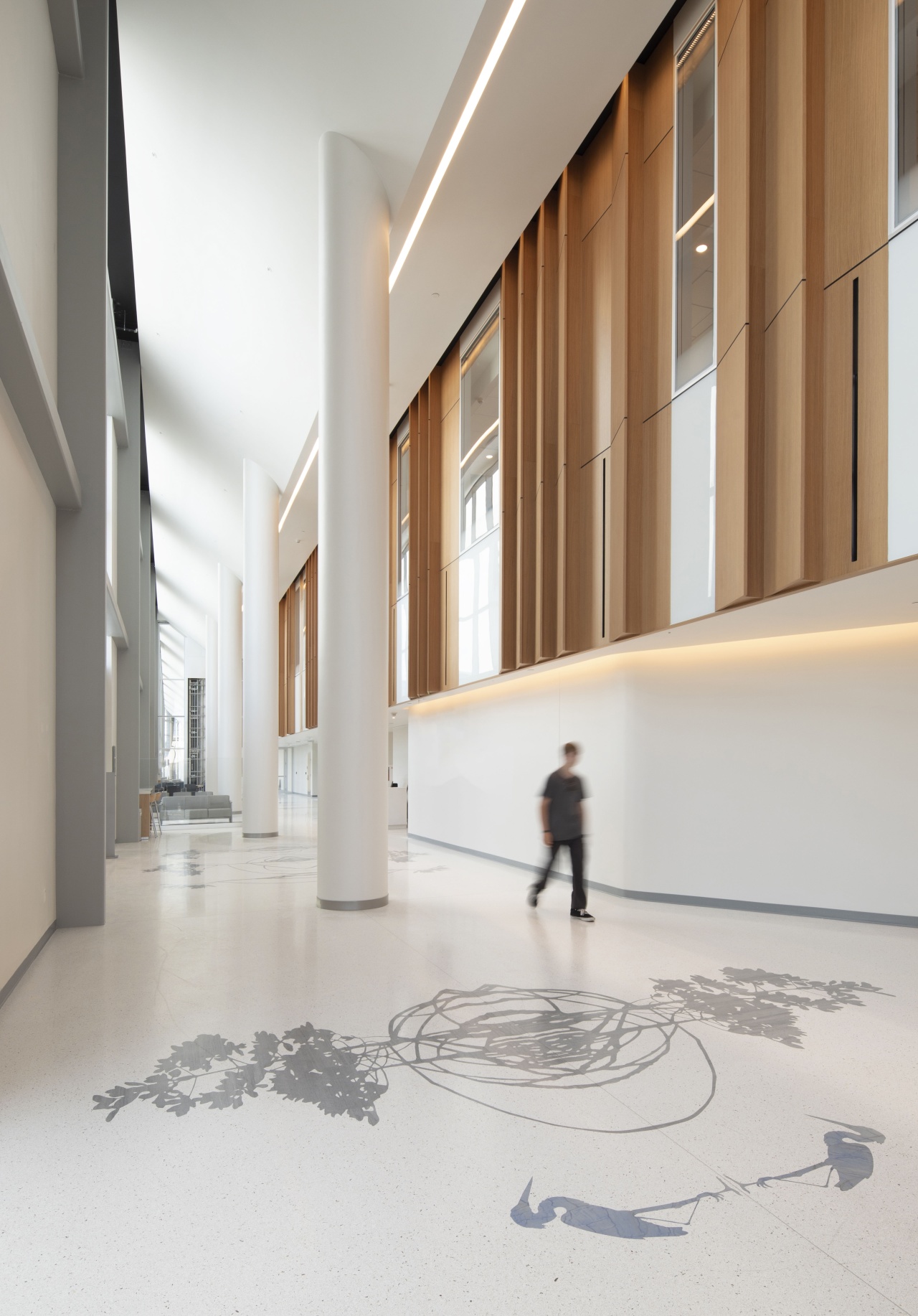 设计将医疗设施作为社区空间来打造,主大堂与一个公共艺术项目进行合作设计,三层包括一个零售中心、多间商务会议室和对社区开放的多功能空间。设计团队还将酒店设计策略融入该项目,作为改变传统患者体验的一部分。