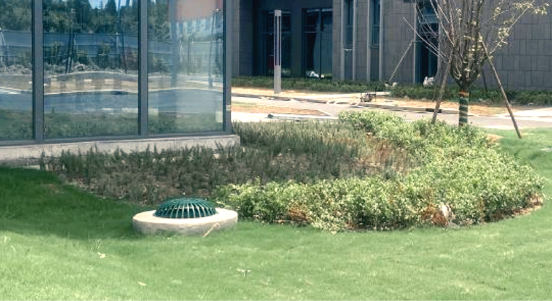 园区内的透水铺装与生物滞留带,与屋面雨水集中收集设施、雨水收集池等一同构建起自然化的雨水管理网络。储存于雨水收集池的雨水,经截污净化处理后,应用于景观浇灌与道路冲洗,由此形成“收集 — 滞蓄 — 净化 — 回用” 的闭环水循环体系,切实有效降低了园区景观运维成本。