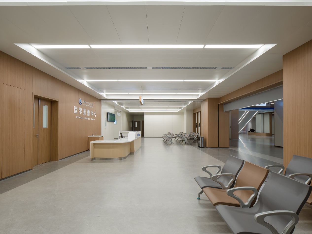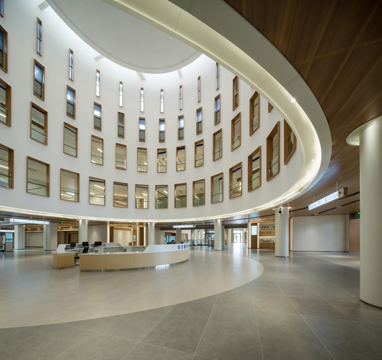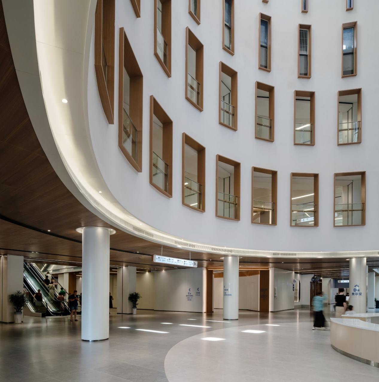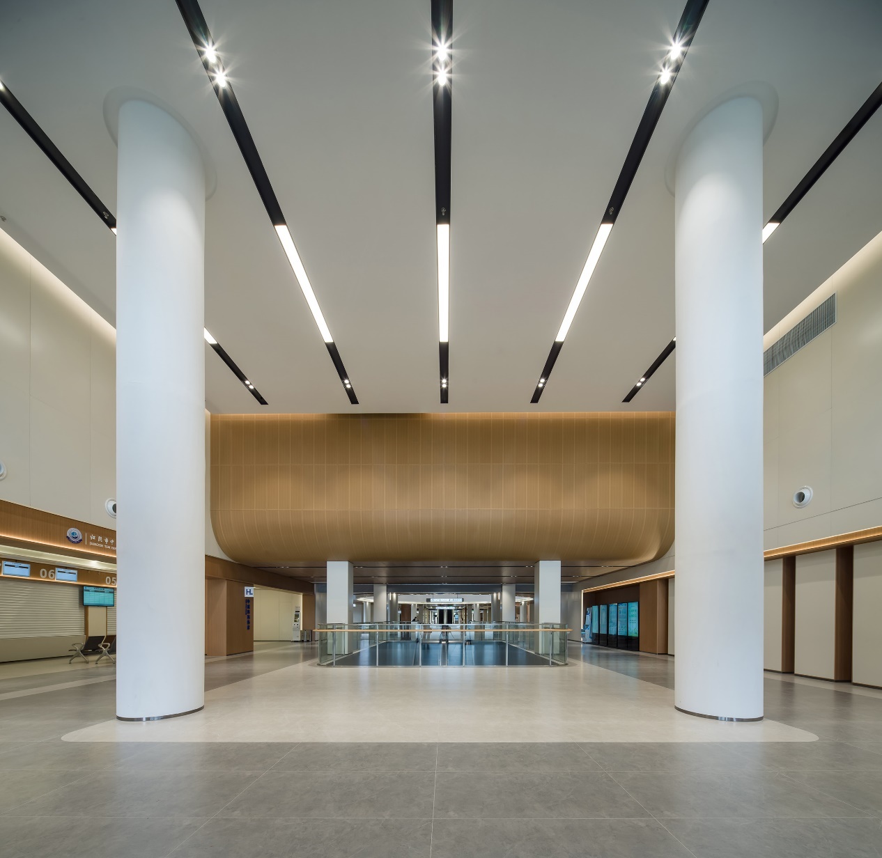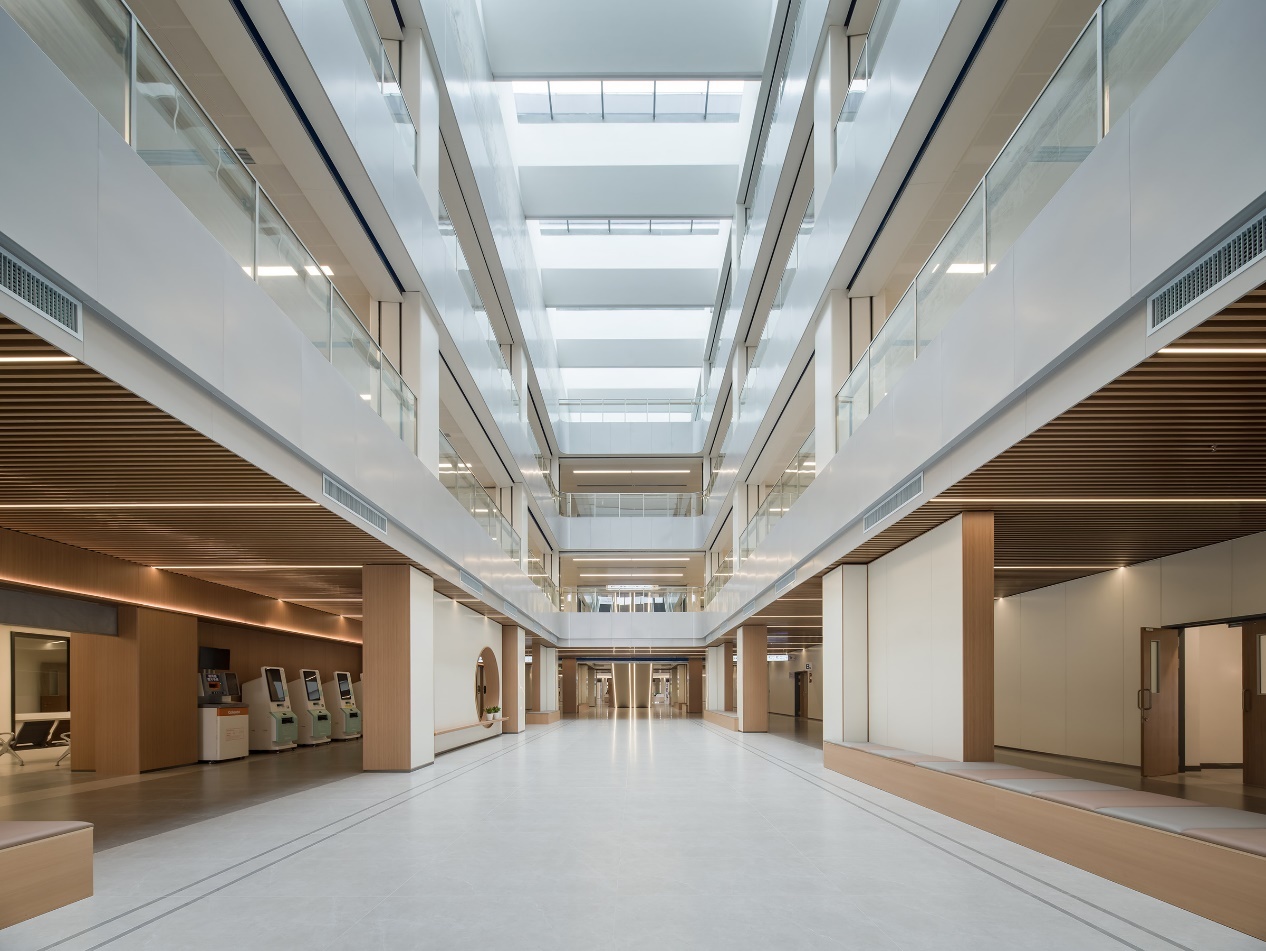 效率是医疗建筑设计的核心考量。在新中医院中十字医疗街的设计,便是解决医技、住院部、门诊、急诊等复杂功能关系的有效模式。这条医疗街不仅是病患就诊的主要路径,更是设计中反复推敲与优化的关键所在。其尺度适中,分诊便捷,明亮而温馨的环境设计,让患者在就诊过程中感受到充分的舒适与便利。
