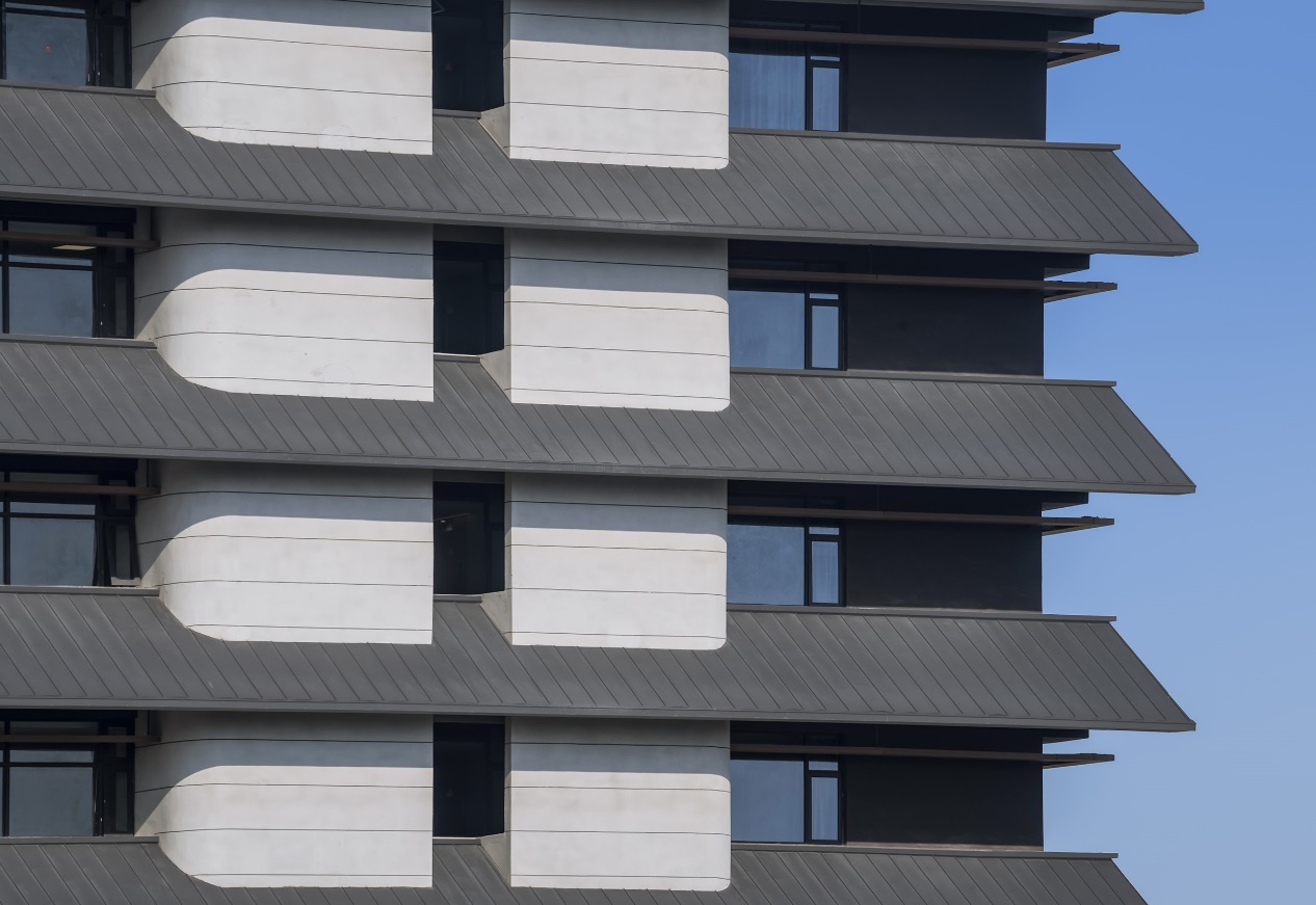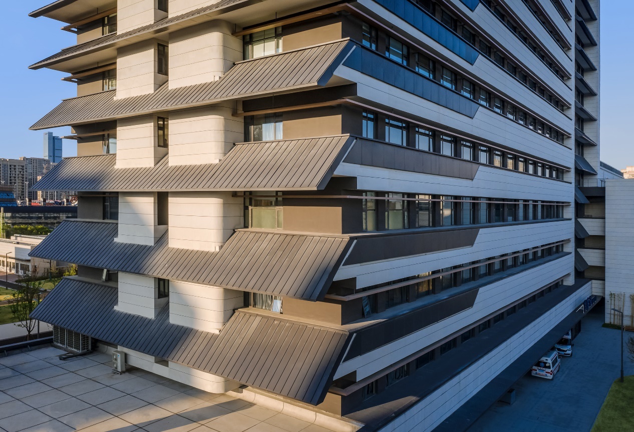 中医文化蕴含着深厚中国文化底蕴与中国医学智慧,在新中医院的设计中得到了抽象的展现:密檐塔楼、中医百宝箱般概念、大屋檐的延伸、灰白色彩的搭配以及木质材料的温暖触感,这些设计元素不仅为医院空间增添了浓郁的文化氛围,更让患者在接受治疗的过程中,能够深刻感受到中国文化的独特魅力。