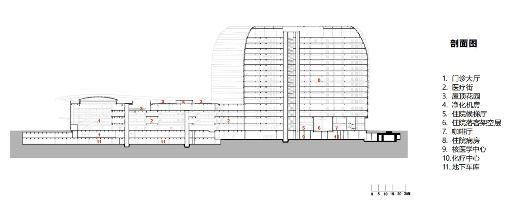 项目总用地面积约7万平方米,总建筑面积约20.2万平方米,其中地上约13.9万平方米,地下约6.3万平方米,总床位数1100床。