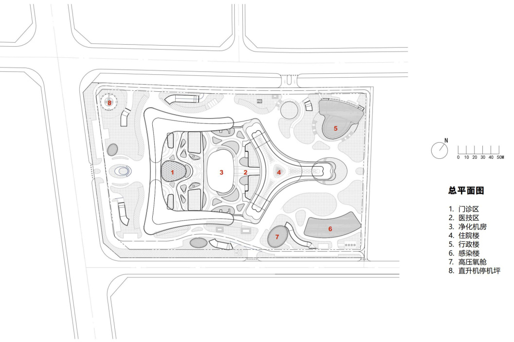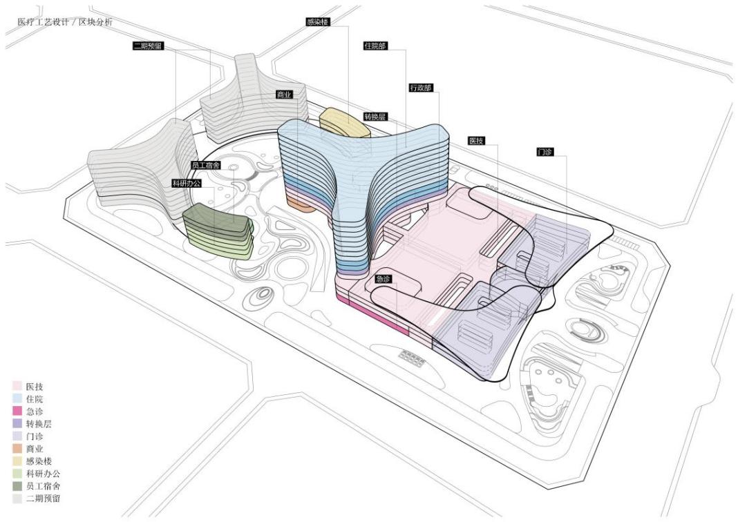 在方案设计阶段的2020年,此规模的县级医院属于新建医院中大规模、高密度的代表。
