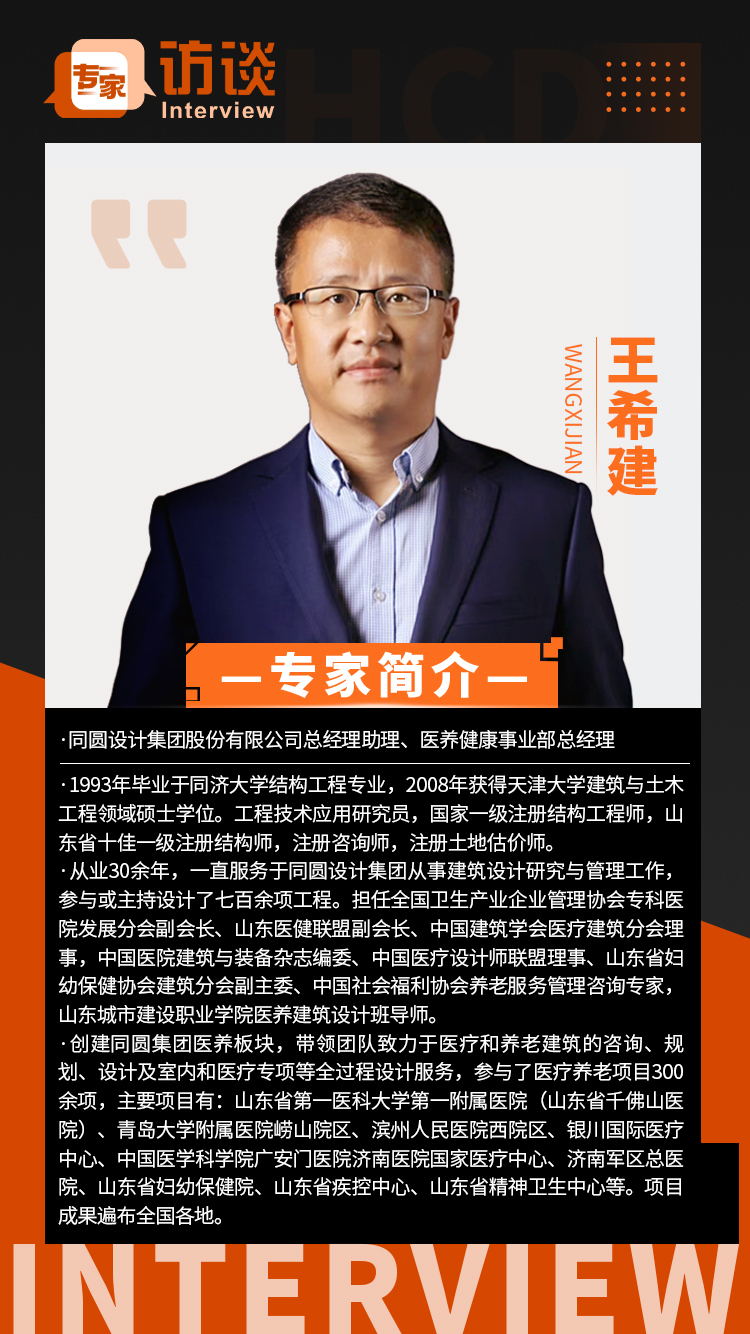 数智浪潮席卷而来,人口老龄化进程持续加快,医康养建筑设计领域正迎来智慧化转型,从“被动照护”到“智慧响应”,从“功能满足”到“人文疗愈”,行业发展焕发新活力。在行业变革过程中,设计院如何葆有核心竞争力和差异优势?如何实现医养康养一体化?在城市更新背景下,又如何将智慧科技融入到空间变化之中?筑医台融媒体中心特邀同圆设计集团股份有限公司总经理助理、医养健康事业部总经理王希建进行了专访。