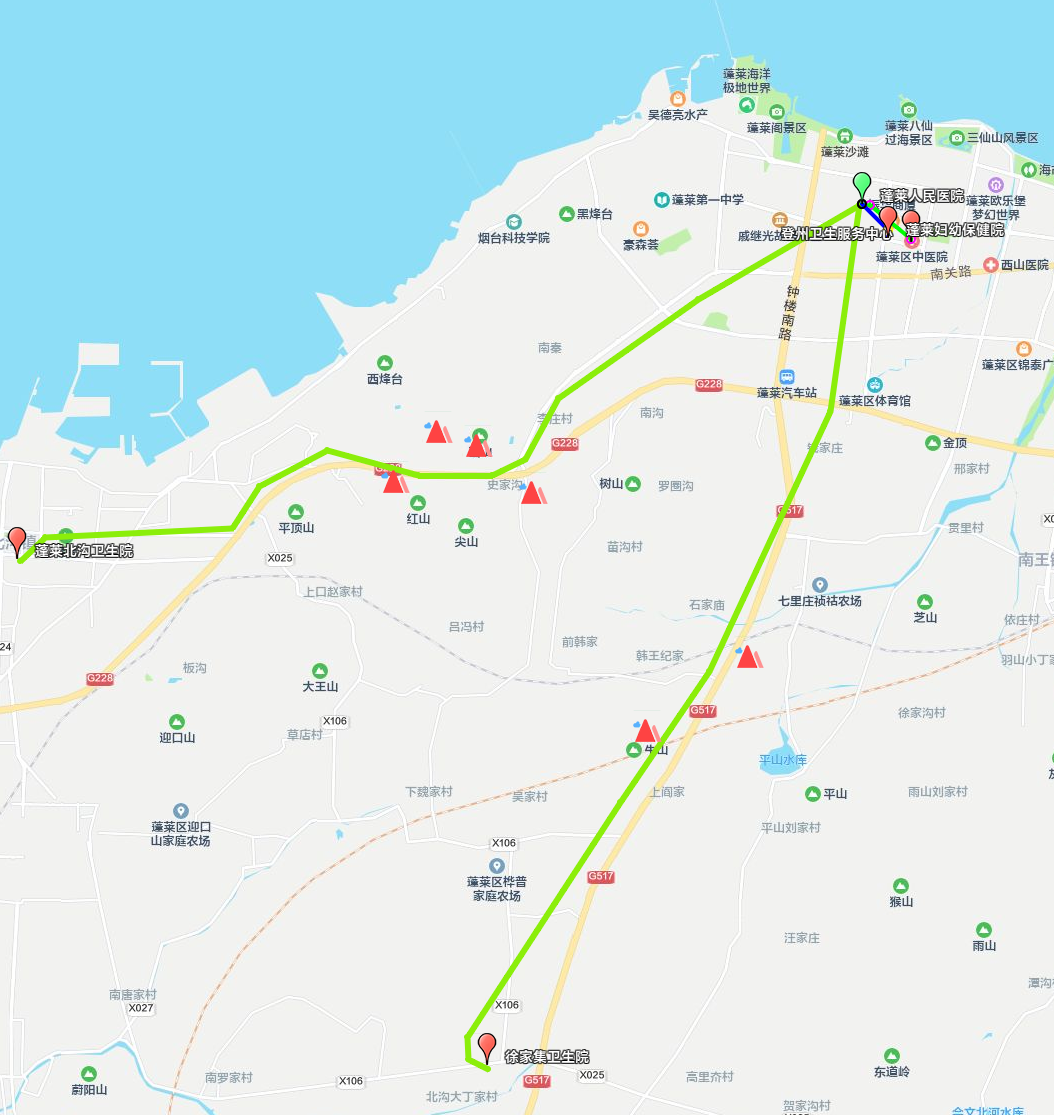蓬莱人民医院 ↔ 北沟卫生院