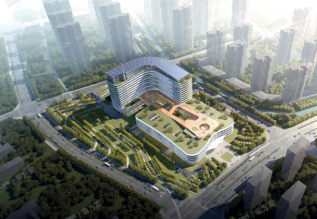 规划建筑群外观呈微弧形向北侧笆斗山打开,如同张开双臂状拥抱自然绿化,将城市景观纳入怀抱。建筑内部形成L形景观轴线,场地东侧景观与江景向场地内部渗透。