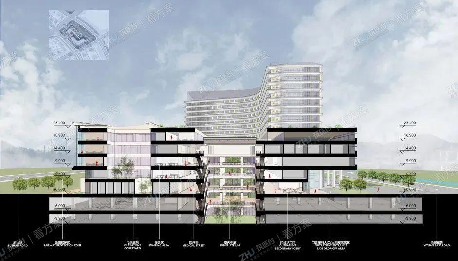 针对建筑进行立体景观利用,扩大休憩空间;进行合理的交通流线组织,增加安全性。针对医护人员,做到所有诊室与办公空间直接通风采光,为医护人员创造医护专属空间、流线,增加休息学习场所改善医护人员工作环境。