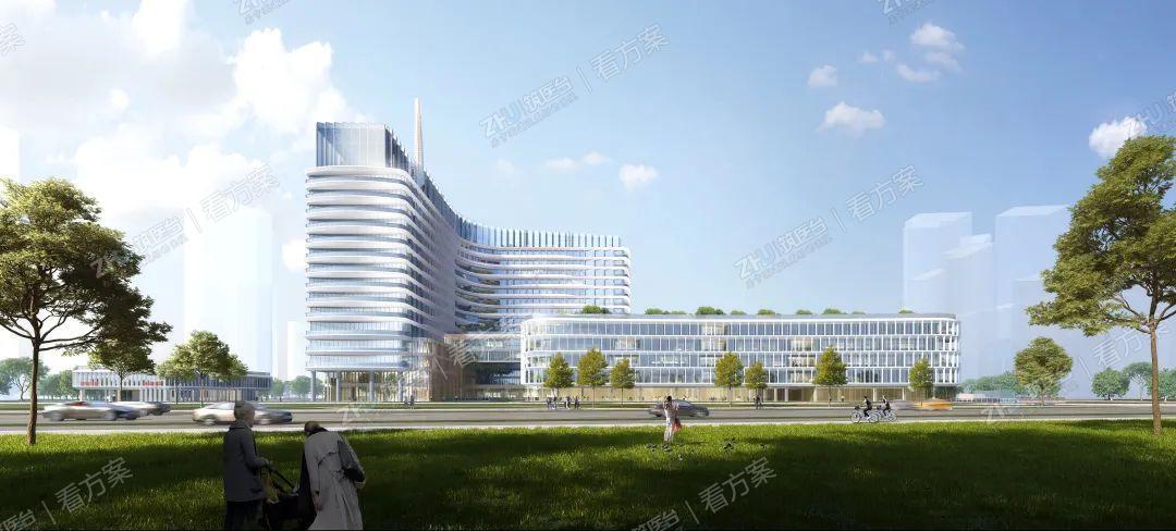 建筑造型设计以燕矶新潮为概念,整体形象在塔楼、裙楼、医疗街、景观庭院等多出运用弧线要素,圆润流转,突出潮水中“洄”的意象。
