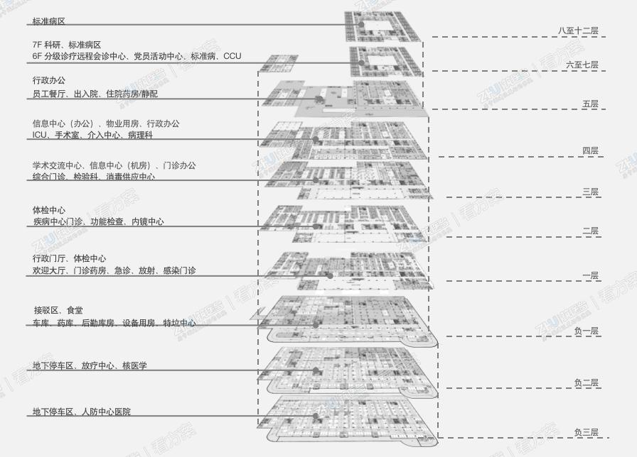 成都市第六人民医院金牛院区项目位于成都市金牛区沙河源街道附近,东侧为泉水路,南侧与汇丰路之间有约60米的距离,西侧未来将形成一条规划道路、北侧为川建路。项目规模136000平方米,规划床位900张。 项目从艺术的体验和人文的感受、绿色的空间和自然的体验等多维度考虑,将纯粹的设计贯穿始终,强调绿色医院、高效医院、人文医院概念,建成后将弥补区域高精尖医疗技术的缺位问题,与城市总体医疗布局相契合。 项目以医疗功能、空间内部人群活动路径行为为核心,从医患的生理、心理需求出发,在设计中融合自然元素,塑造出空间干净、温暖、安全的氛围。以现代化的设计语言来表达丰富的设计内涵,秉承少即是多的设计观点,强化绿色、安全、高效医院设计理念,通过室内环境的塑造,提升医院建筑内部空间自然、温馨、舒适的体验。