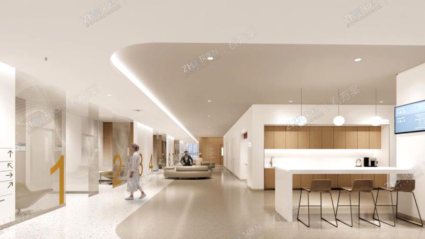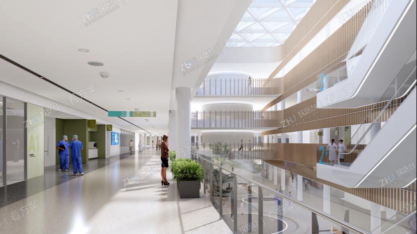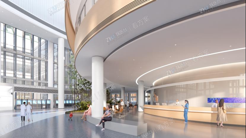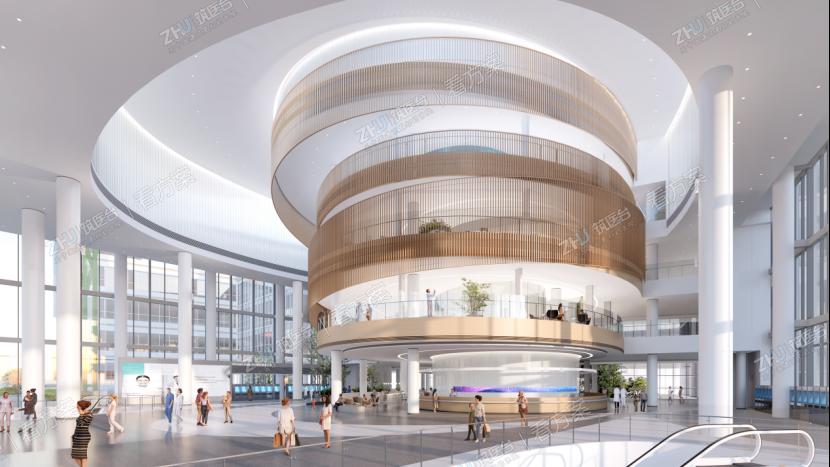 长三角国际医学中心总医院室内空间以江南水乡,水网交织的独特地理环境为设计出发点,打造具有地域特色的流动性公共空间。